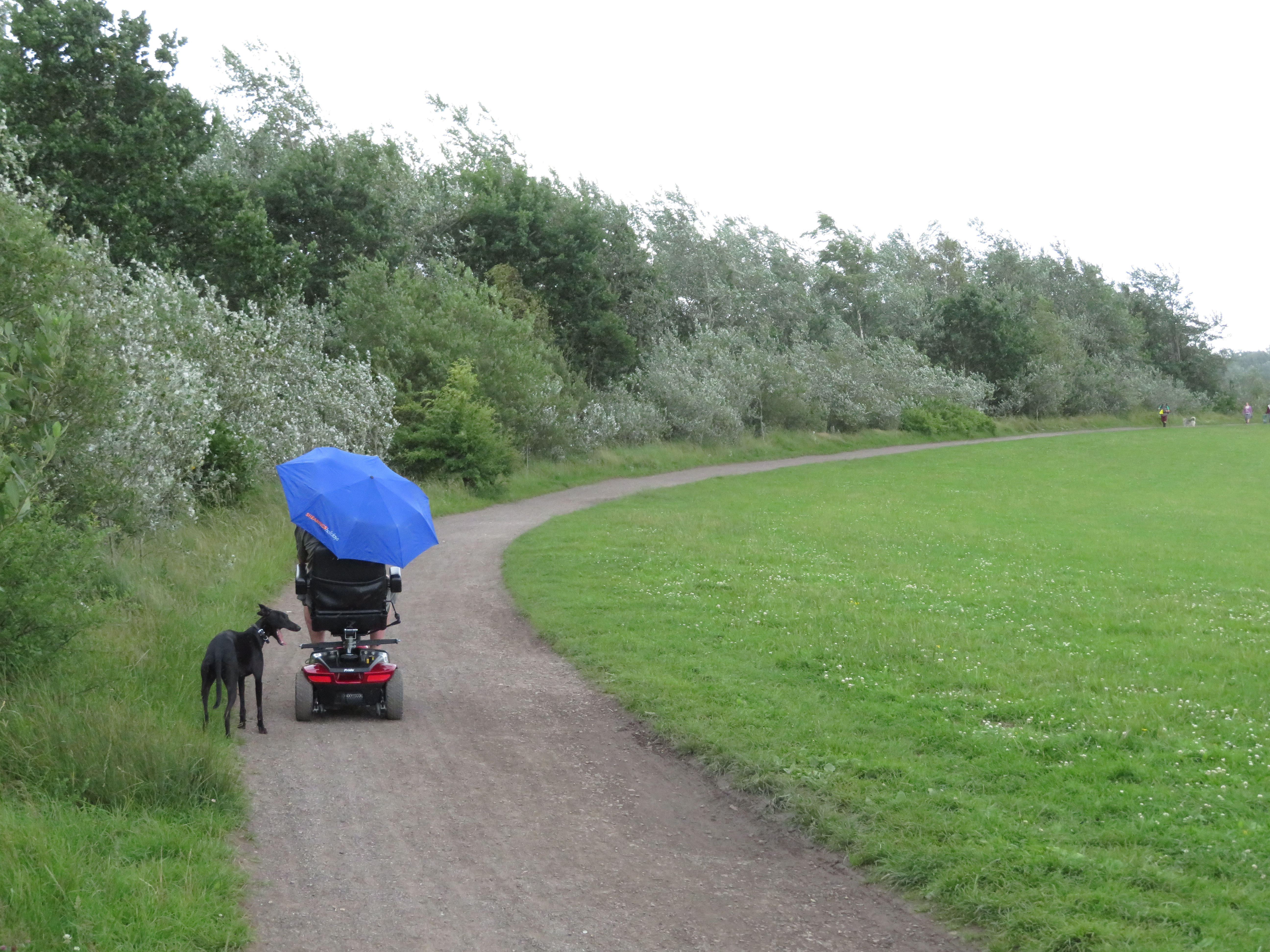 It’s a weekday and the weather is unreliable, but Anglers Country Park is very busy. 40 years ago this was a very deep hole, one of the deepest open-cast coal mines in Europe. The last time I was here was a very cold night in February, for the CPRE Star Count, as the site has the darkest night sky for miles around. Today, the people pursuing their daily lockdown constitutionals are easy to spot, mainly consisting of couples walking quite briskly without much conversation. They’ve said all there is to say today, but they must stretch their legs. A haggle of teenage boys seem to be chatting about their GCSE English syllabus. A few families are picnicking and playing Frisbee, and as a blustery shower comes upon us, a man jumps athletically from his mobility scooter to grab a small umbrella, and proceeds to share its feeble protection with his bored greyhound. All of life is here, and its joyous.