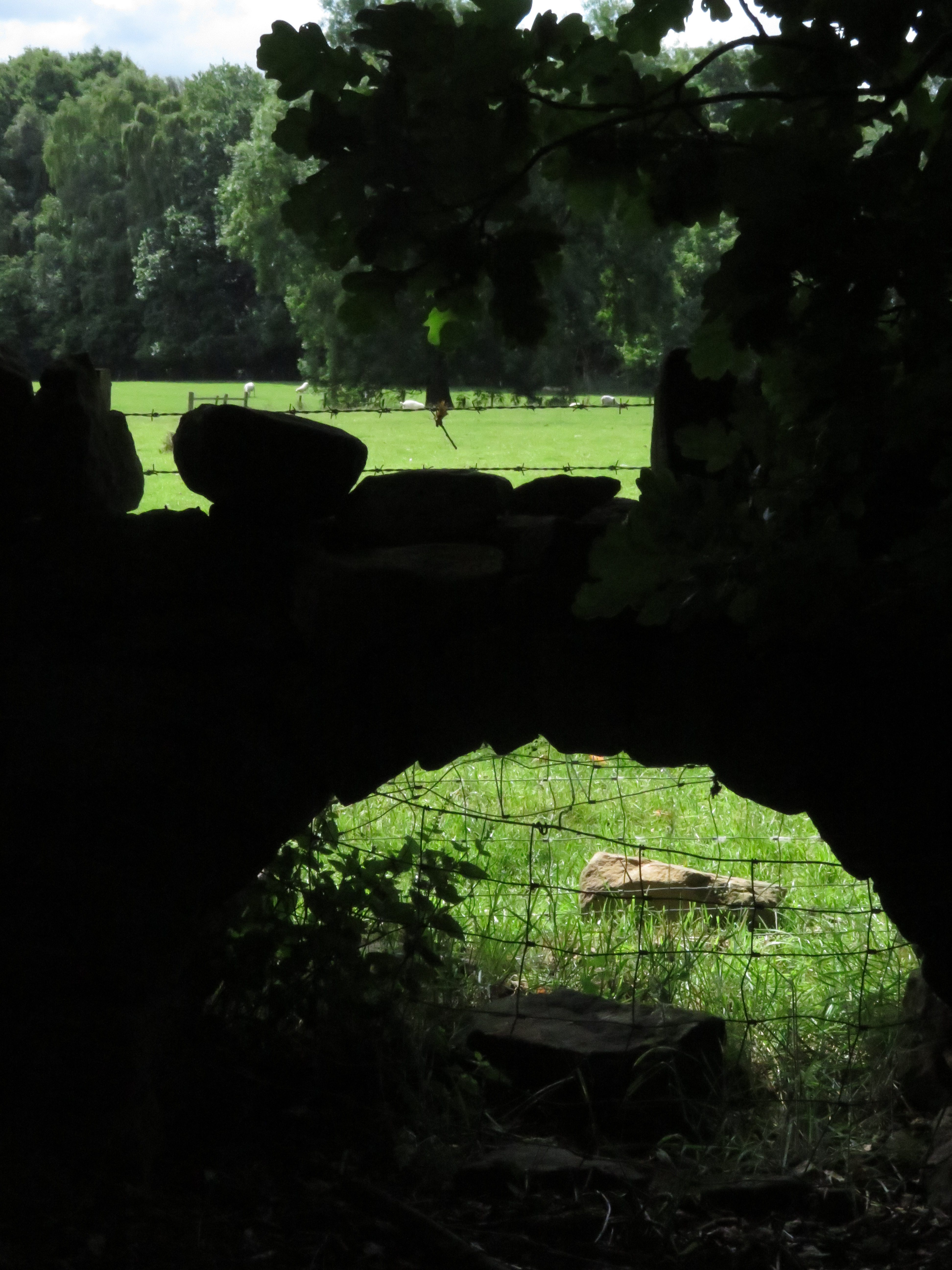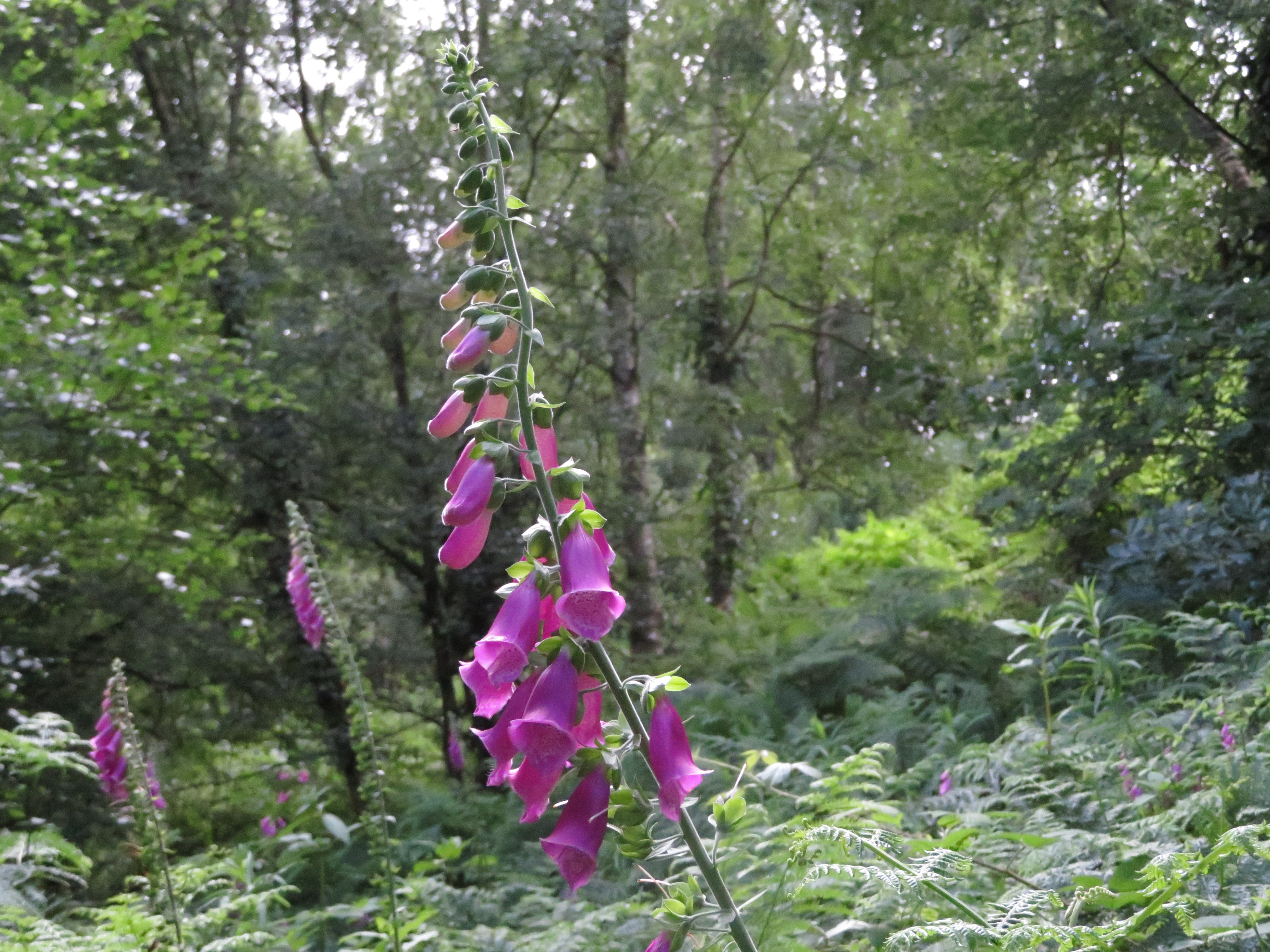 Continuing east along the top of Woolley Edge is a drag, because there is no view and no footpath, and I’m constantly ducking onto the verge to dodge the oncoming traffic. The topography of the road would make for glorious cycling, but I wouldn’t contemplate doing battle with the cars and lorries. After pausing to try to photograph a robin, I arrive alongside a string of parked cars at the junction of Gallows Lane, which tells me there is something here to see. Given the road name, I’m hoping it’s not a public hanging. In fact, it’s Seckar Woods. Dropping down into the ancient woodland, I’m instantly transported. The tranquillity is something to behold, meditative. The burr of traffic remains in the background, but the prevailing sound is birdsong, and the light is beautifully dappled. The floor is a seabed of ferns and foxgloves.