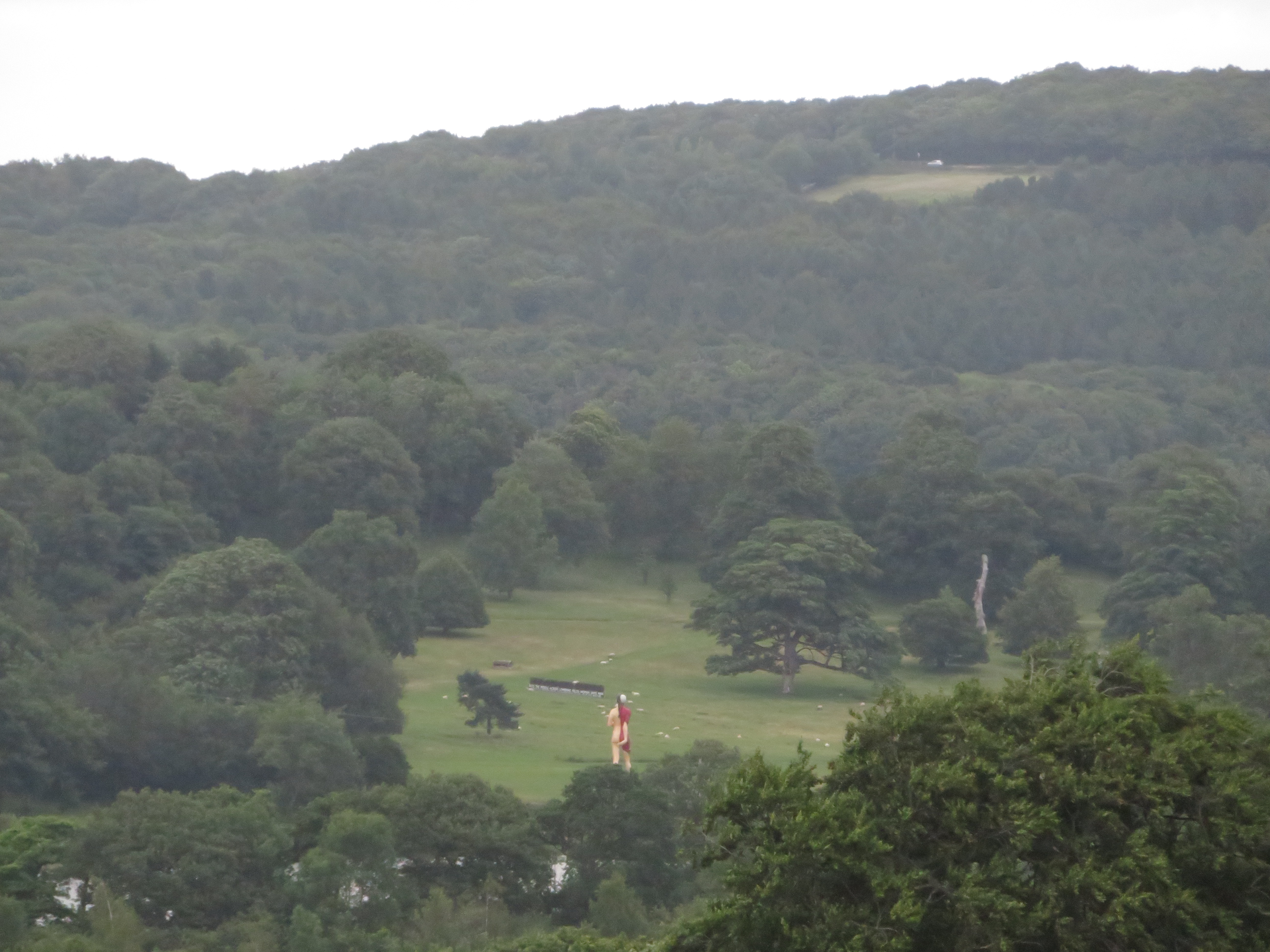 I’m on the three-way boundary between Barnsley, Kirklees and Wakefield, so this is the south-western most toe of Wakefield district. Arriving in Wakefield by the gate into the Bretton parkland, with its beautiful iron linkage, heightens the sense of occasion. The landscape change is sudden, and I’m greeted by a large young man in a padded jacket, his back to me, checking his phone. He is the first person I’ve seen on my walk, and it takes me a moment to realise he is a sculpture.