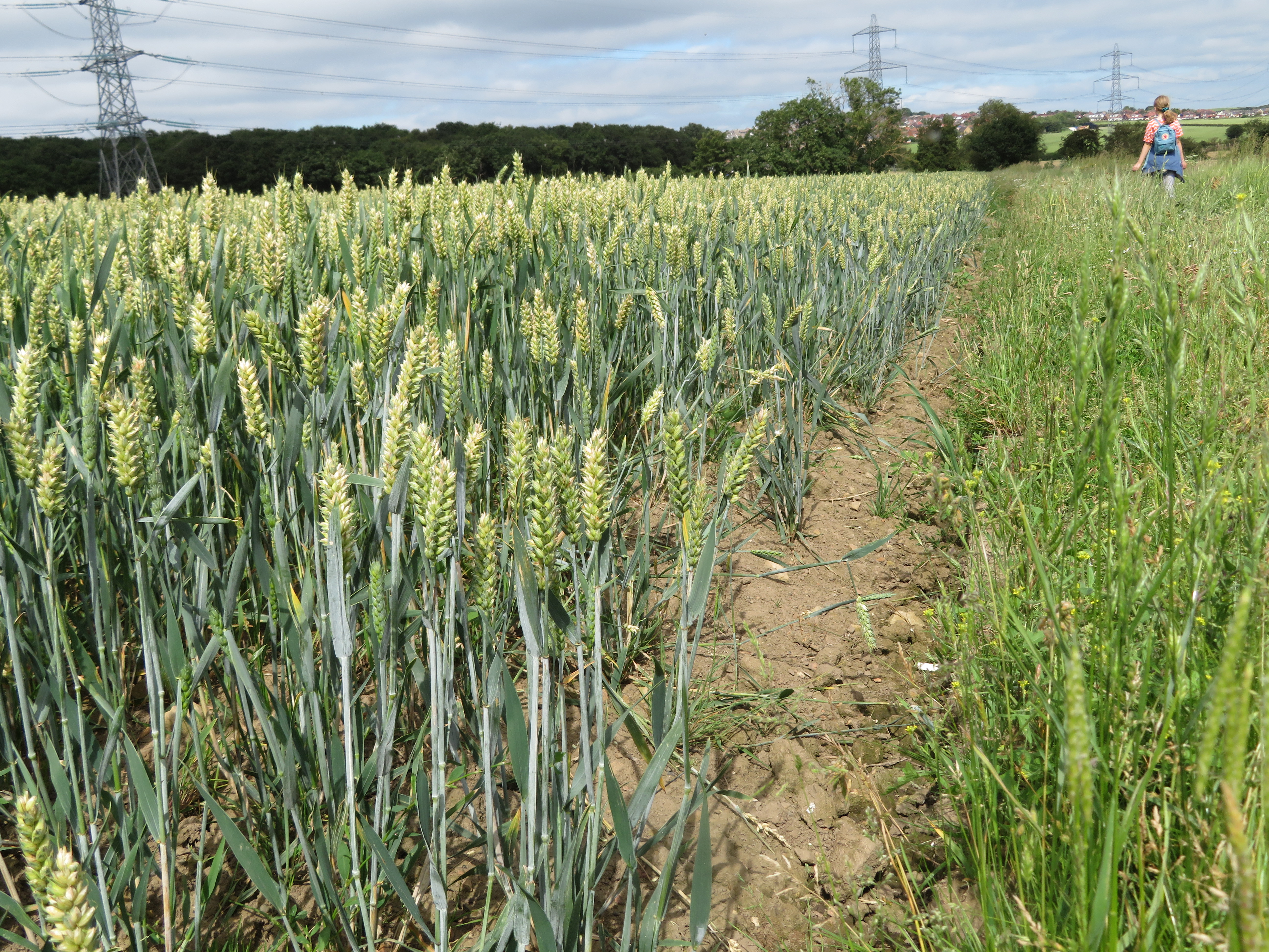 Finally, after another grim dash across the dual carriageway, we come to the site of the Chidswell urban extension. There is no sign of it yet – it is just some expansive wheat fields framed by two tracts of woodland and bisected by a march of electricity pylons. It’s a gigantic ‘glint site’. It’s in a very visible tract of landscape, but I ponder whether or not it’s an interesting landscape. I seek my daughter’s opinion, as we debate the aesthetics of the pylons. “I really like it,” she says, pulling the ears off a wheat stalk. “It’s open and peaceful, and I like the colours.”