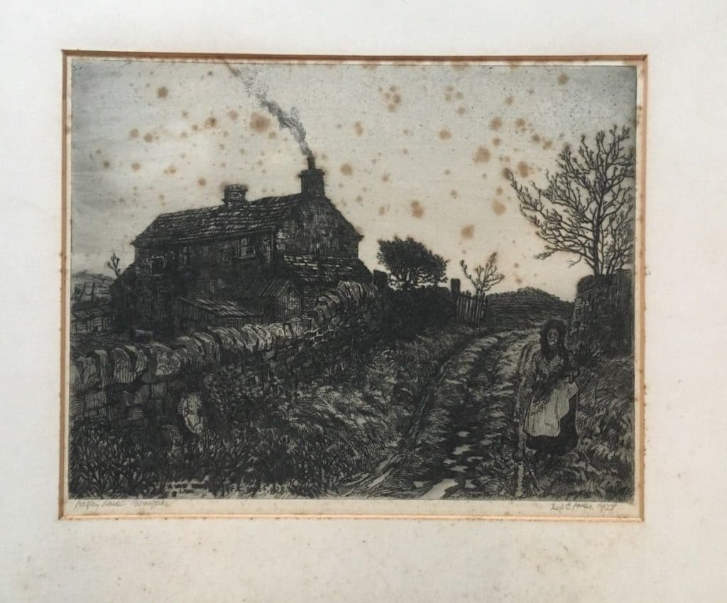What I love about art is that it can transport you to not only a place, but a time. I bought a very sad etching a little while ago for a couple of pounds, to practice my conservation skills. It was in a sorry state. Everything was wrong with it. It was stuck to a board, covered in foxing, torn and yellowed with age. It was by an artist called Fred Jones. Fred was a proud West Yorkshireman, born in Bradford. He loved the landscapes of West Yorkshire and produced both paintings and etchings. His work can be found in regional galleries around West Yorkshire – in Bradford, Huddersfield and Wakefield.